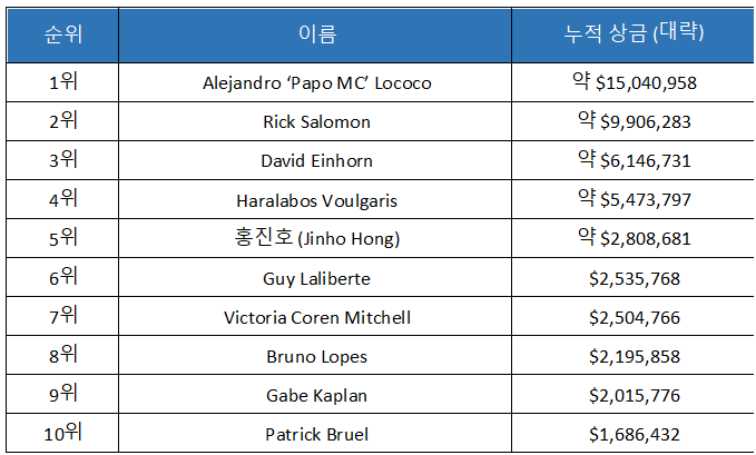 그의 이름이 이 순위에 있다는 사실만으로도, 한국 포커 팬들에게는 자부심을 느낄 만하다.