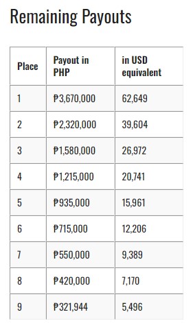 최종일이 다가오면서, 9명의 경쟁자 중 한 명이 PHP 3,670,000(약 USD 62,649)의 거대한 상금을 차지하게 될 것이다. 또한, 상위 두 명은 PHP 120,000 상당의 APPT 마닐라 패키지를 받게 된다.