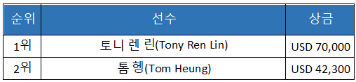 이날 메인 이벤트 외에도 USD 10,000 NLH/PLO 믹스 이벤트가 함께 열렸다. 토니 렌 린(Tony Ren Lin)이 USD 70,000의 우승 상금을 차지했으며, 준우승은 톰 헹(Tom Heung)이 USD 42,300을 획득했다.