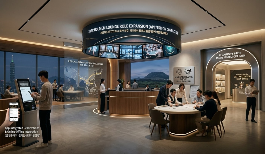 2026년 제주 포커 붐(APT 제주 클래식 1,718 엔트리 기록, William Li 우승, Triton ONE 열풍) 이후 홀덤라운지가 한국과 아시아 전역으로 폭발적으로 확산됐다. 홀덤라운지는 온라인의 편의성과 라이브의 강렬함(텔 읽기, 압박 관리)을 연결하는 완벽한 브릿지 공간으로 자리 잡았다.