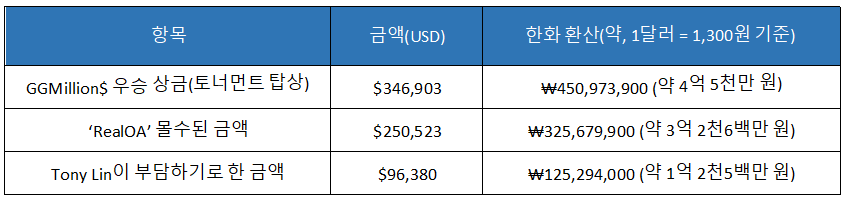 GGPoker는 10월 22일 공식 판결을 통해 ‘RealOA’의 챔피언 타이틀 박탈, 계정 영구 정지, $250,523의 자금 몰수 처분을 내렸고, 린에게는 무기한 정지와 재분배된 상금의 $96,380을 자비로 부담하라는 조치를 발표했다. 또한 두 사람은 GGPoker 플랫폼 및 모든 WSOP 오프라인 이벤트 참가 금지 처분을 받았다. 이 전례 없는 수위의 제재는 업계와 플레이어 사이에 강한 논쟁을 불러일으켰다.