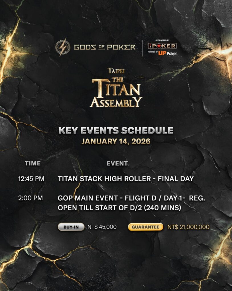 플라이트 A, B, C를 통과한 모든 생존자들은 1월 16일 Day 2에 복귀한다. 이들은 모두 총상금 TWD 21,000,000을 나눠 갖게 되며, GOP 타이베이 2026 메인 이벤트는 본격적인 우승 경쟁 단계로 접어들었다.