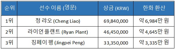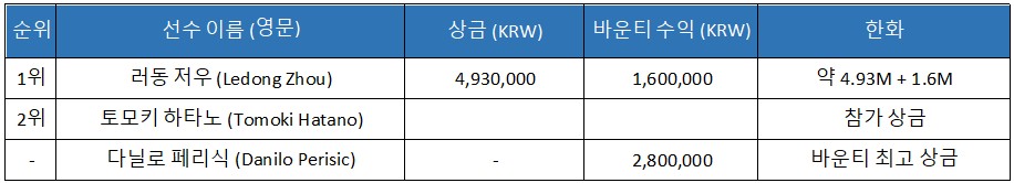 싱글 데이 하이롤러 이벤트에는 134명이 참가해 KRW 289,440,000의 순상금 풀을 형성했다.