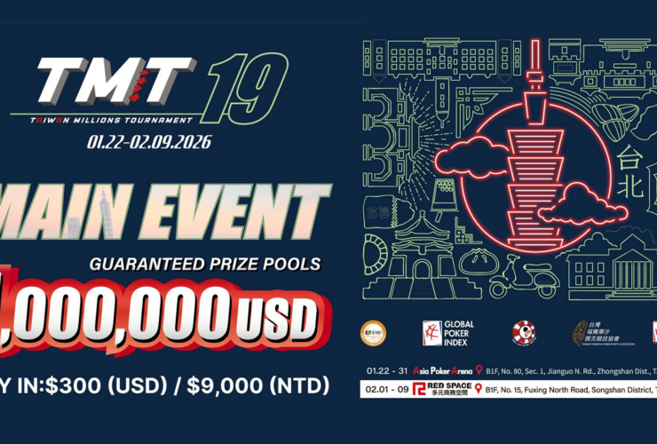 Taiwan Millions Tournament 19 (TMT 19)는 2026년 1월 22일부터 2월 9일까지 대만 타이페이에서 개최되며 아시아 포커 신기록을 세웠다. 총 30,788명 참가, 130개 이상의 트로피 수여, 총 상금 USD 5.7M 이상(약 77억 원)을 기록하며 명실상부한 아시아 최대 규모 시리즈로 자리매김했다. 이번 ...