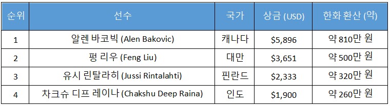 같은 날 열린 Deepstack Hyper Turbo 이벤트 ($200)에서도 치열한 경쟁이 펼쳐졌다. 빠른 블라인드 상승과 짧은 샷 클록이 특징인 이 이벤트에서는 캐나다의 알렌 바코빅(Alen Bakovic) 선수가 최종 우승을 차지했다.