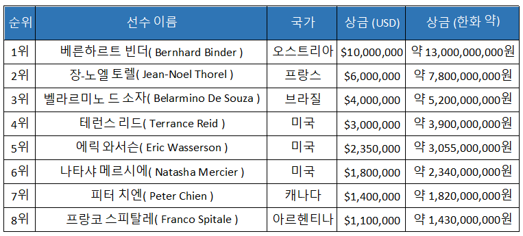 빈더는 이번 WSOP Paradise 슈퍼 메인 이벤트 우승으로 생애 첫 WSOP 브레이슬릿과 함께 1,000만 달러(약 130억 원)라는 엄청난 상금을 손에 넣었다