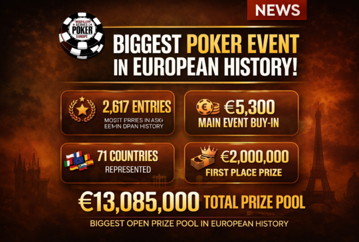 유럽 포커의 성지에서 펼쳐지고 있는 ‘2026 WSOP 유럽(WSOPE) 메인 이벤트’가 그야말로 전무후무한 기록을 세우며 순항 중이다. 이번 대회에는 총 2,617명의 참가자가 몰리며, 참가비 €5,000 이상의 유럽 토너먼트 중 역대 최대 규모라는 금자탑을 쌓았다. 전 세계 71개국에서 모여든 포커 고수들이 뿜어내는 열기로 가득 찬 이번 WSOPE 메인 이벤트는 총상금 풀(Prize Pool)만 무려 €13,085,000(한화 약 193억 2천만 원)에 달하며 유럽 포커 역사상 가장 거대한 오픈 필드를 형성했다.